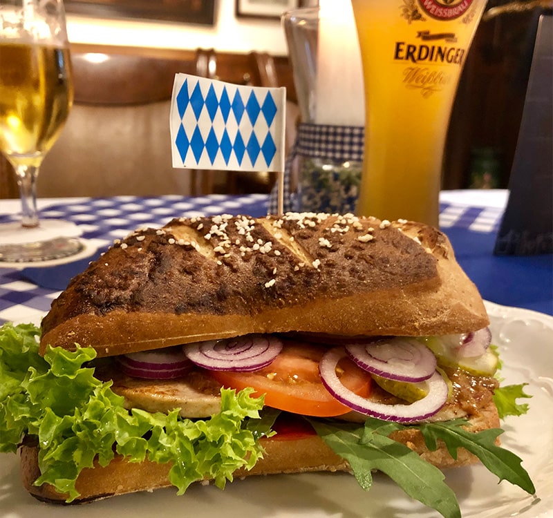Natürlich gibt es zünftige bayerische Spezialitäten wie Schweinshaxe, Nürnberger Rostbratwürstchen, Leberkäse, Kaiserschmarrn und vieles mehr.